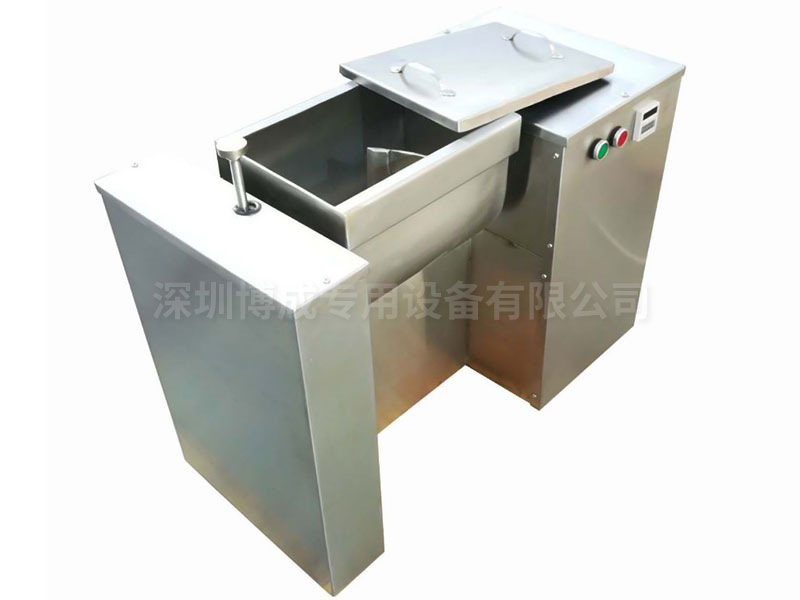 3、倒料時,旋轉機器左端手輪,由于渦輪、渦桿傳動有自鎖作用。因此,混合箱可在任意角度倒料。