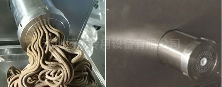 混合后的藥坨,投入料口,在電動機的驅動下。喂料器葉片內旋壓入螺旋槽內,并旋向機口,因藥坨面積大于孔板的小孔面積而受阻時,藥坨的致密性、溫度、粘度相應提高,當機腔過飽和時,煉好的藥坨從孔板的小孔連續(xù)擠出,供制丸生產使用。