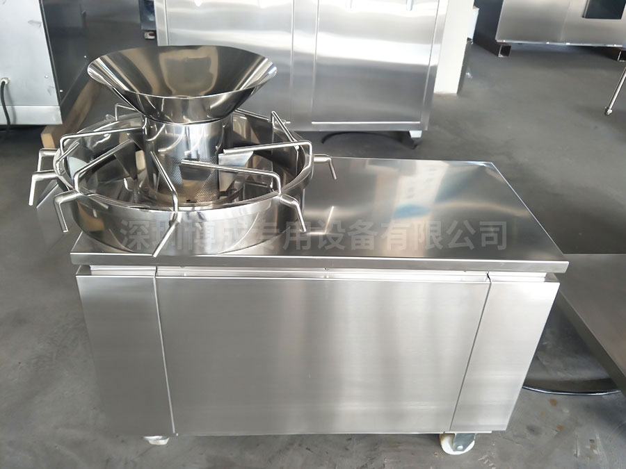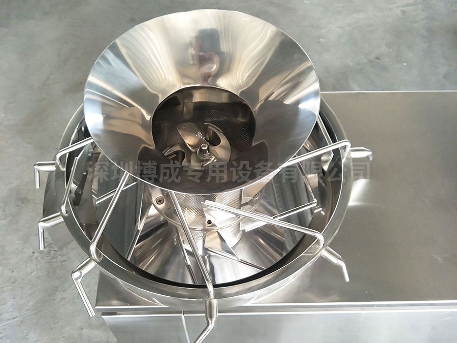 1、本機(jī)上部為制粒部分,它主要有十字碾刀、篩筒、防塵罩等組成。各種部件全部采用不銹鋼制成。